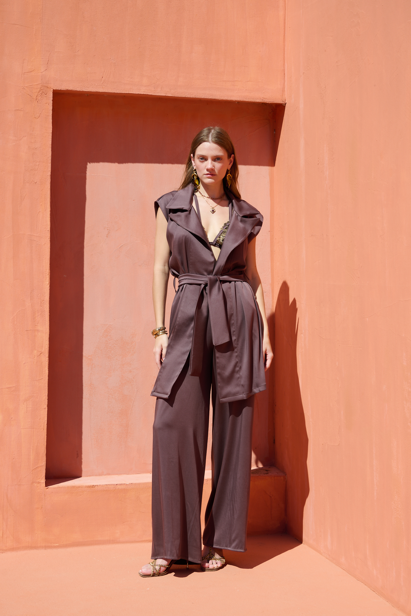 Refined, elegant, and effortlessly modern — these high-waisted, wide-leg trousers are designed to move with ease and confidence. Crafted from a luxurious satin-finish fabric, they offer a soft, fluid drape that flatters every silhouette. The self-tie belt cinches the waist for a defined shape, while the wide-leg cut elongates the figure for a timelessly chic look.